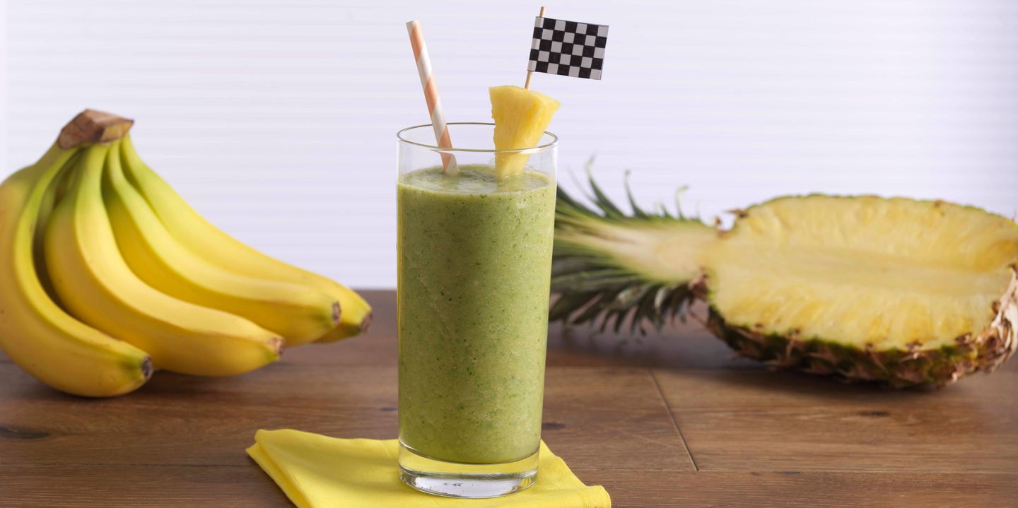 - COMBINE pineapple, spinach, banana, almond milk, ice and cinnamon in blender. Cover; blend until smooth.