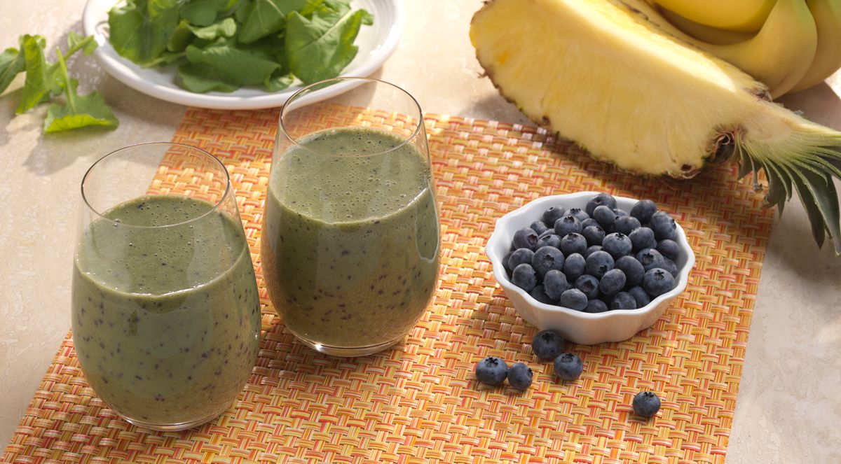Combine almond milk, baby spinach, banana, pineapple, blueberries, and honey in blender. Cover; blend until smooth. Divide mixture between four glasses.
